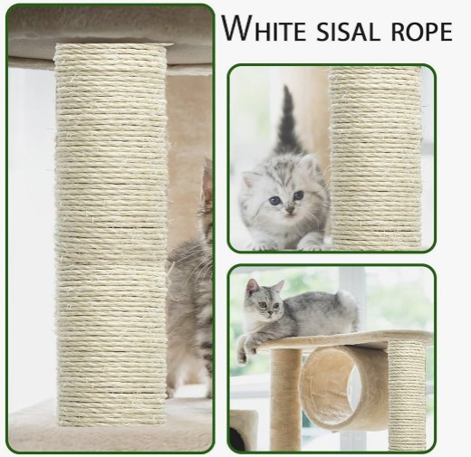| Fungsi goresan | Kucing memiliki sifat cakar biasa. Sisal tangguh dan tahan lama, yang dapat mempertajam cakar kucing tanpa menyebabkan kerusakan pada furnitur |