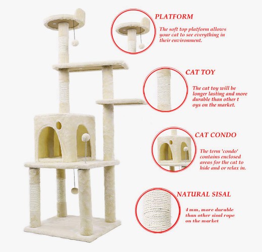 Tiang goresan kucing yang terletak di pohon kucing adalah tempat untuk menggaruk dan memanjat, menyediakan ruang bagi kucing untuk berolahraga dan memuaskan cakar alami mereka. Tiang goresan kucing biasanya terbuat dari bahan sisal, yang memiliki ketahanan dan daya tahan aus yang baik. Kucing dapat memanjat, melompat dan menggaruk tiang goresan kucing untuk melatih tubuh mereka dan memperkuat kekuatan otot mereka. Posting goresan kucing juga dapat digunakan sebagai mainan untuk kucing untuk meningkatkan hiburan dan kesenangan mereka. Posting goresan kucing juga dapat digunakan sebagai titik pengamatan untuk kucing, memberikan perspektif tinggi ketika kucing beristirahat atau bermain.