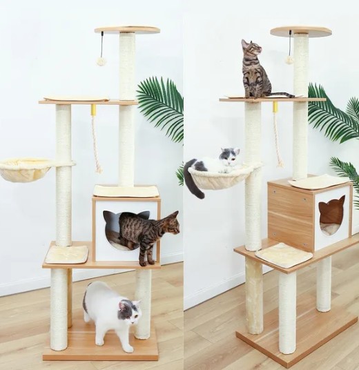 | Daya tahan dan stabilitas | Kayu ramah lingkungan memiliki kekuatan dan ketangguhan alami, dapat menahan kucing yang memanjat dan melompat, memiliki ketahanan korosi yang baik dan ketahanan serangga, dan memperpanjang masa pakai pohon kucing |