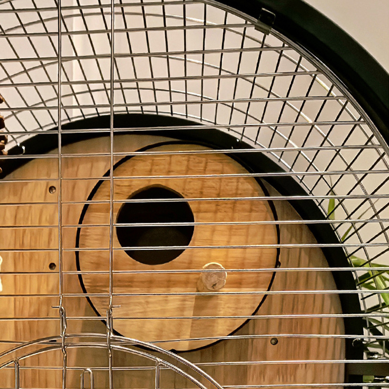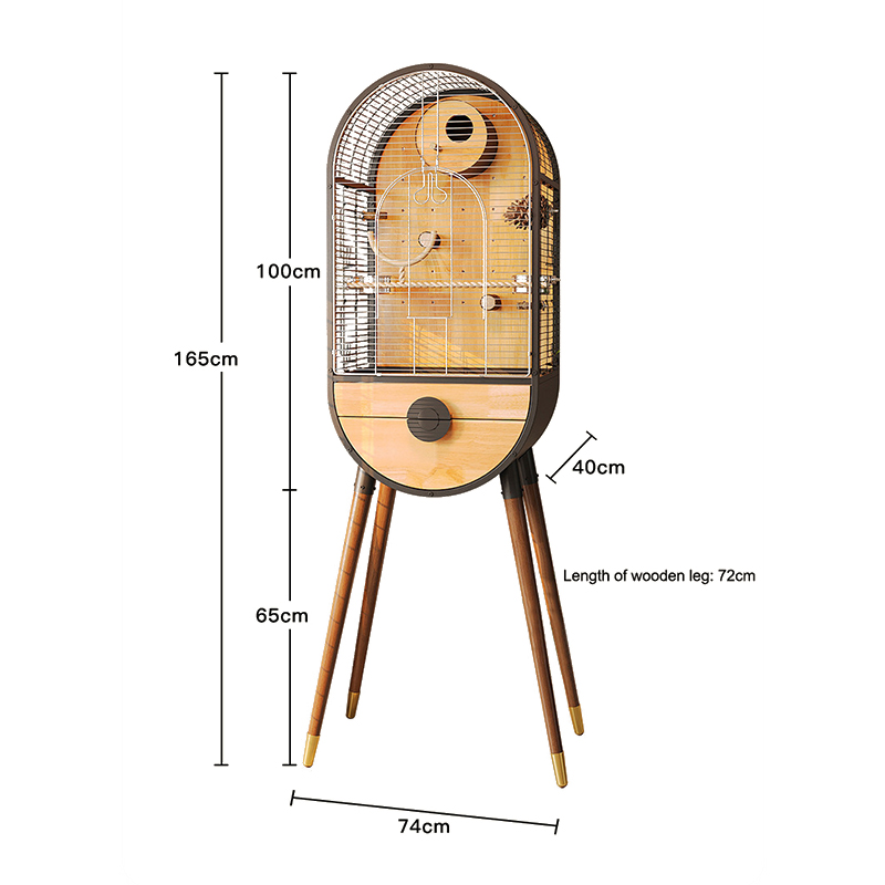 1. Bahan yang Dipilih: Sangkar burung yang dipilih bingkai kayu karet impor dengan braket anti-high baja karbon tinggi untuk membuat struktur utama yang solid dan tahan lama.
