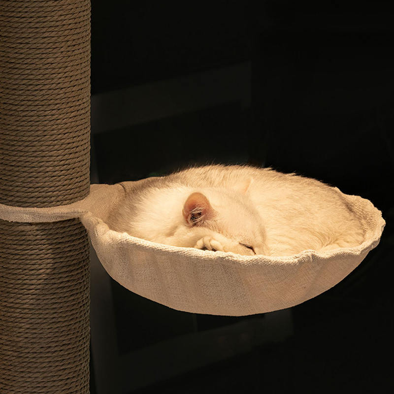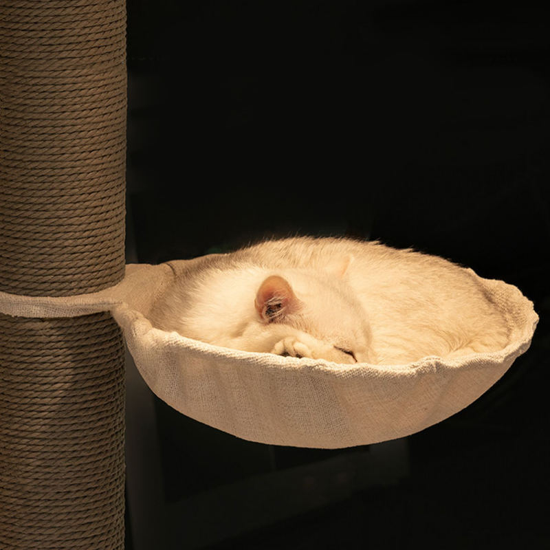 2. Ruang istirahat yang nyaman: Pohon kucing memiliki jejak kecil dan dilengkapi dengan tempat tidur gantung yang lembut, yang mudah dibersihkan dan dirawat, memberikan sudut istirahat yang nyaman untuk kucing favorit Anda kapan saja.
