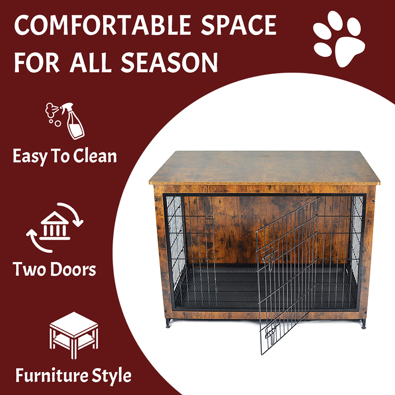 1. Bahan Aman dan Sehat: Kandang anjing gaya furnitur yang dipilih bingkai kayu solid dengan kawat baja karbon rendah, desain anti-goresan sudut bundar, baki plastik komposit abs, keselamatan hewan peliharaan yang menjaga semua-sekitar.